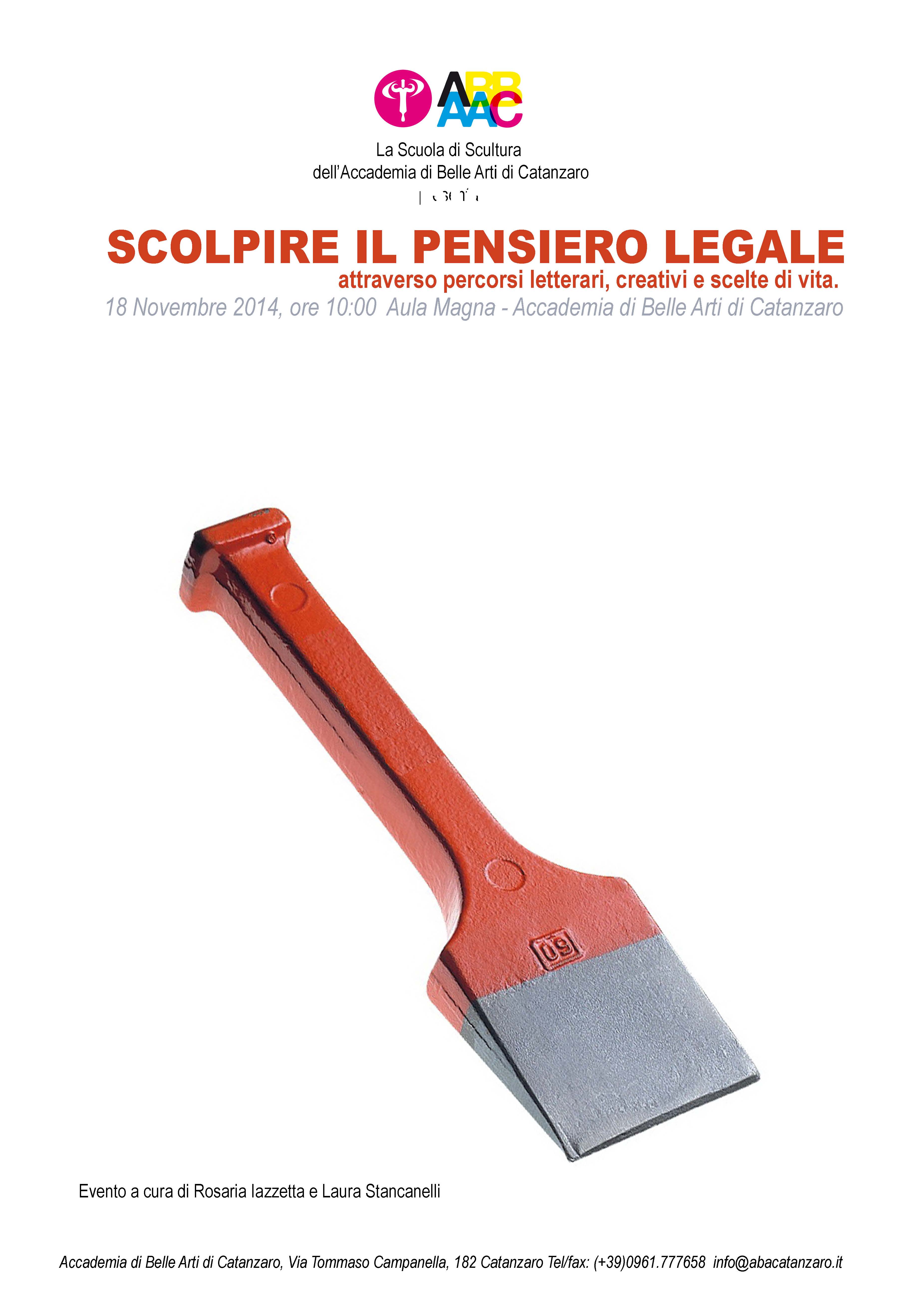 Qui, in Calabria. Dove la storia letteraria e filosofica non è stata un’arma sufficiente, a raggiungere standard di libertà elevati, la lotta contro la criminalità organizzata, diventa uno strumento necessario per il raggiungimento, di quella mancata crescita sociale. Senza quest’ultima, il benessere culturale e tutte le sue dirette conseguenze, non hanno abbastanza forza per quel radicale cambiamento, e lasciano alle “intemperie” tutte le profonde realtà che per spessore e intelligenza soffocano o si arrovellano altrove e non più in Calabria. Alcuni dei protagonisti della lotta, indipendentemente dalla quantità di danno che arrecano all’antistato, o/e fluttuano nella leggerezza dello stato, in termini di mancata giustizia sociale, sono invitati a confrontarsi nella piattaforma culturale, ideata, dalla Scuola di Scultura dell’Accademia di Belle Arti di Catanzaro. Costruire forme, vuol dire anche e soprattutto preoccuparsi dei contenuti, derivanti da verità e libertà, senza dimenticare le categorie a “rischio”, quelle che in alcuni concetti d’interesse economico, sono definiti deboli e invece sono sensibili, o fragili, e sono invece, diversi per creatività.