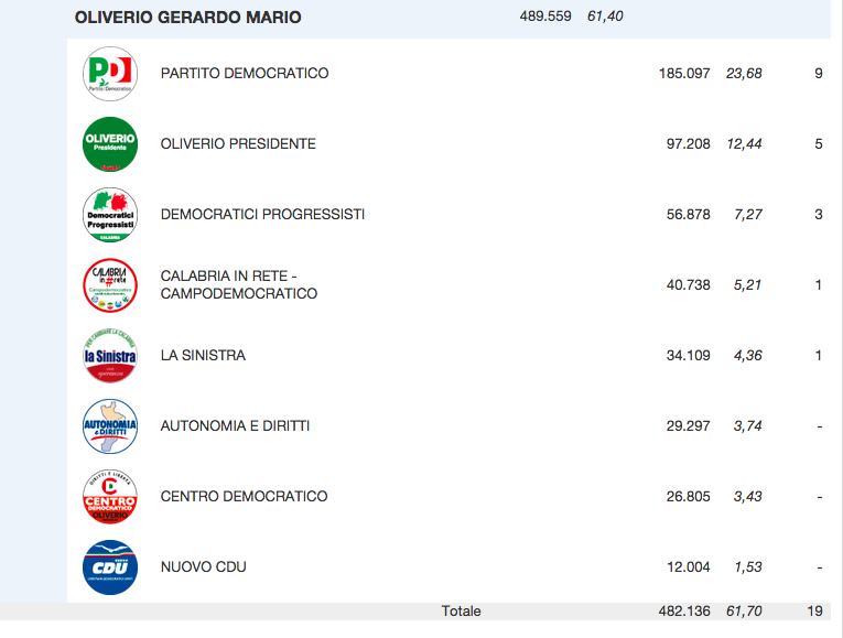 - 3 per la lista Oliverio Presidente
