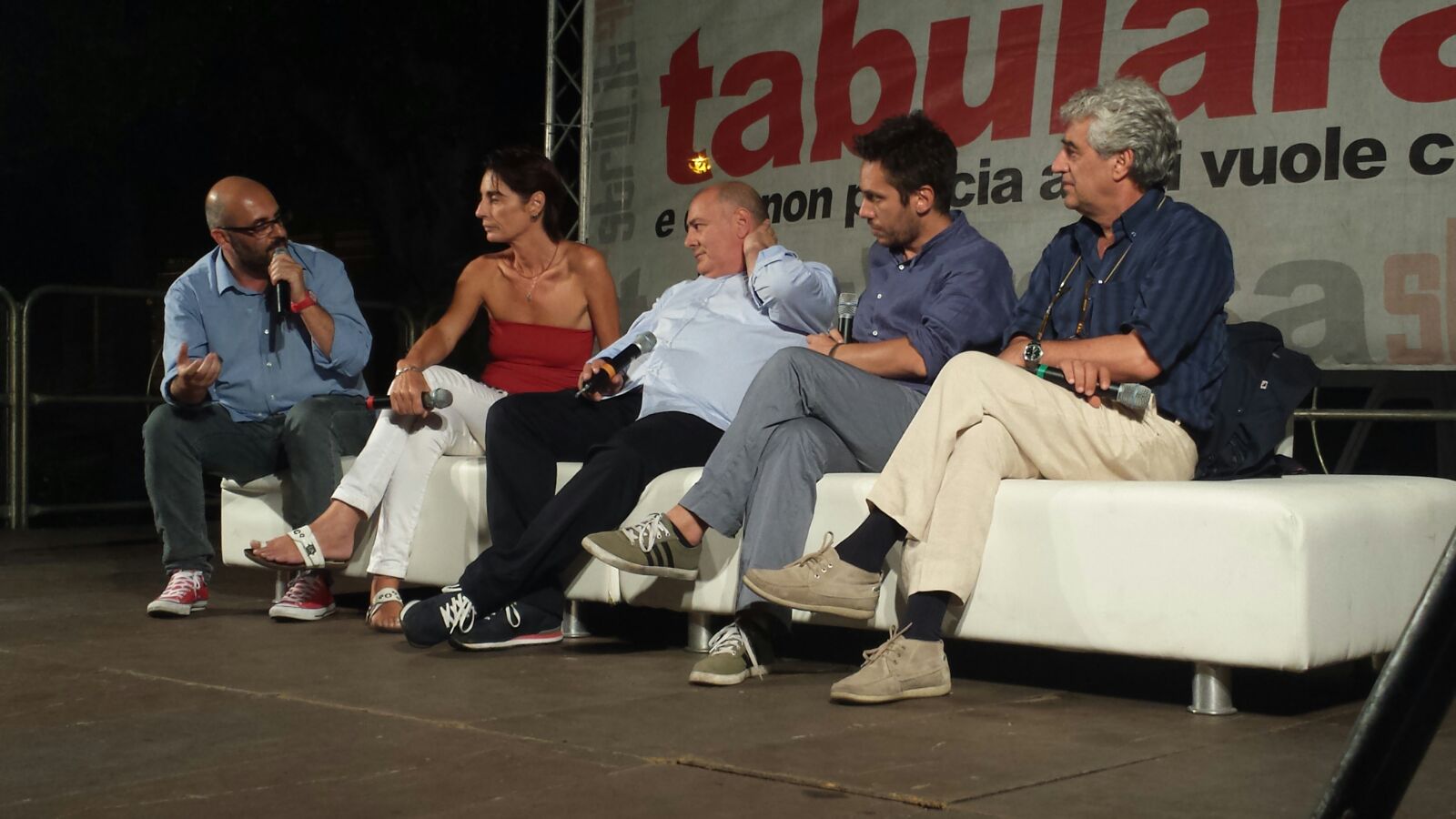 I sensi della narrazione è stato il titolo dell’incontro svoltosi a piazza Italia nell’ambito della kermesse Tabularasa promossa da Giusva Branca e Raffaele Mortelliti. A raccontare le ispirazioni e gli sguardi da e verso la Calabria sono stati gli scrittori calabresi Gioacchino Criaco, originario di Africo e autore del romanzo “Anime nere” (Rubbettino) da cui è stato tratto il film diretto da Francesco Munzi e vincitore di nove David di Donatello, Vins Gallico, originario di Reggio Calabria e oggi residente a Roma, finalista al premio Strega con “Final Cut. L’amore non resiste” (Fandango edizioni), Mimmo Gangemi, originario di Santa Cristina d’Aspromonte e residente a Palmi, che nel mese di aprile ha pubblicato “Un acre odore di aglio” (Bompiani) e “La Verità del giudice meschino” (Garzanti), Paola Bottero, piemontese di origine ma calabrese di adozione, autrice di quattro romanzi, l’ultimo dei quali è “Carta vetrata” (Sabbiarossa edizioni), che ha anche affiancato Raffaele Mortelliti nella moderazione della serata.