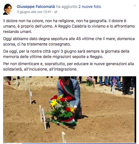«Ringrazio il Sindaco Falcomatà per la grande sensibilità dimostrata nell’organizzare questa significativa cerimonia – ha aggiunto Ruvolo – e tutte le autorità civili, religiose e militari per aver risposto al suo appello. Vedere i parenti delle vittime piangere i loro cari, ai quali abbiamo assicurato una degna sepoltura, è stato un momento molto toccante che ci fa riflettere sul ruolo che la nostra comunità deve far valere nel processo di dialogo e di cooperazione tra i popoli del Mediterraneo. Quella avvenuta nei giorni scorsi non è certo la prima tragedia che accade nel Canale di Sicilia e purtroppo, probabilmente, non sarà neanche l’ultima. Ma mai era avvenuto che nella nostra Città arrivassero 45 salme tutte insieme. Un cosi grande numero di tumulazioni non si vedeva dai tempi del terremoto del 1908. Una tragedia che deve farci riflettere ed al contempo ci spinge a proseguire la nostra opera instancabile, necessaria a contribuire al processo di accoglienza».